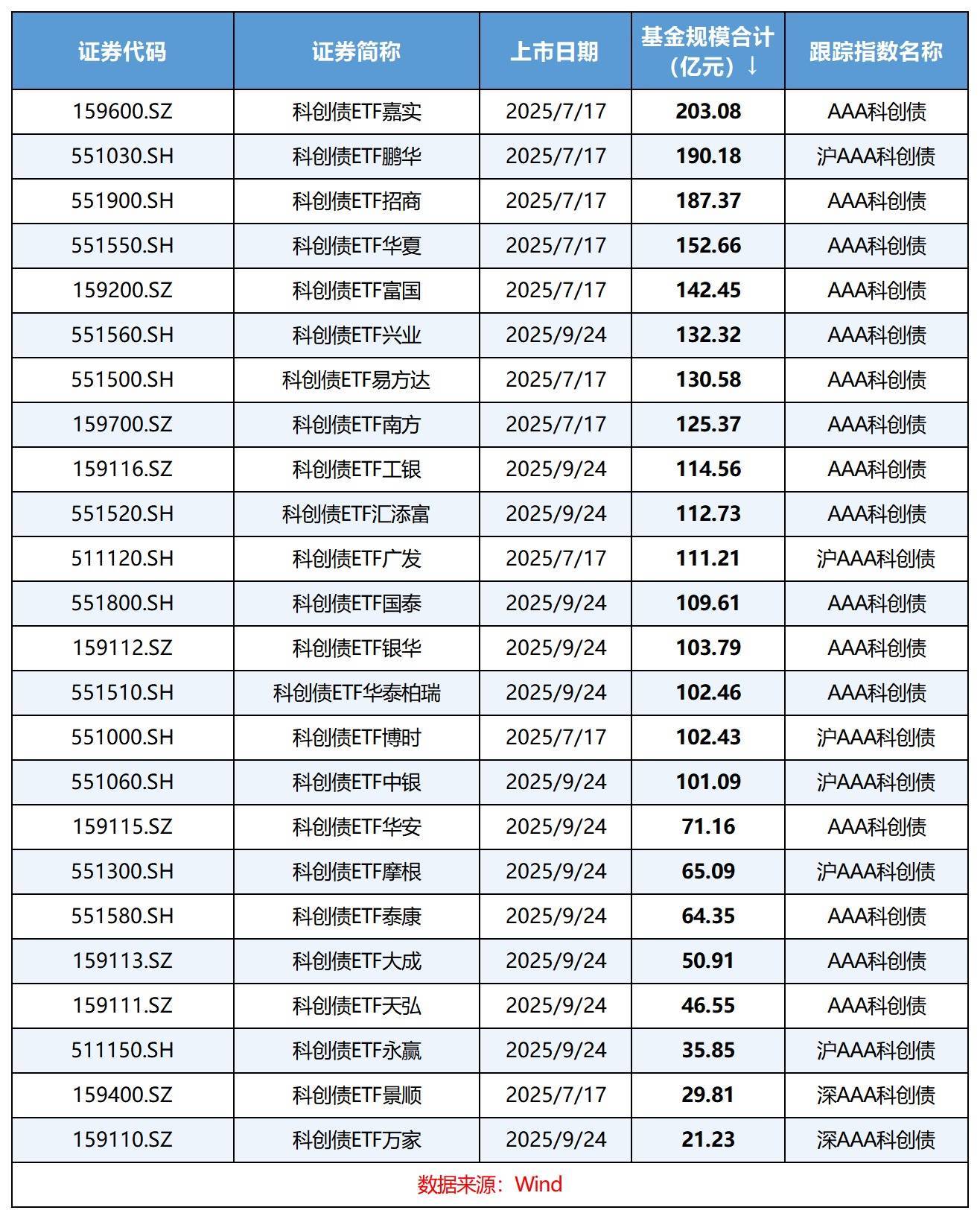 随着9月最后一个交易日落幕,刚刚问世不久的科创债ETF合计规模达到2506.84亿元,展现出了较强的市场吸引力和流动性。