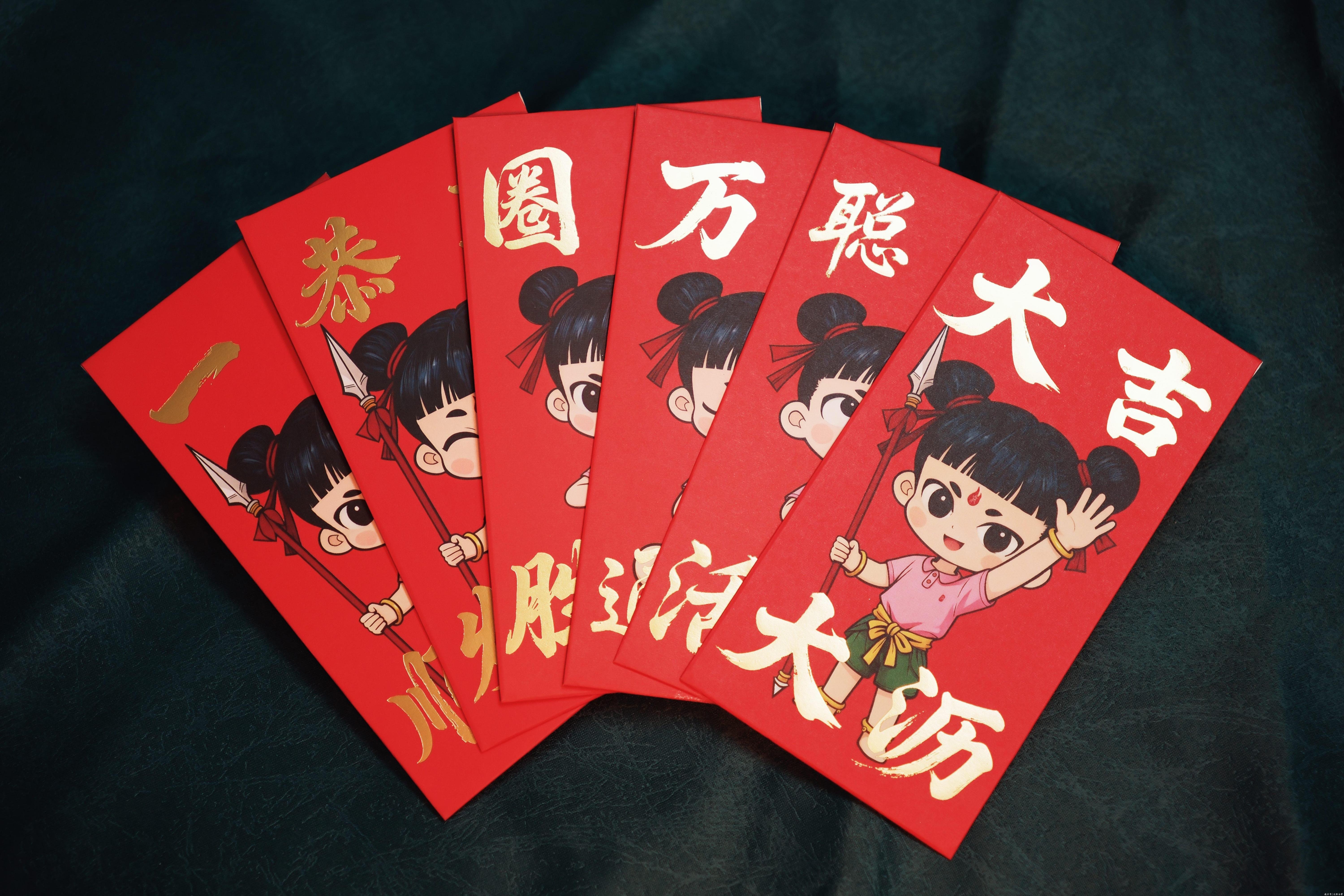 萃取哪吒聪慧、勇敢、活力的精神内核,寄寓新岁勇往直前、突破进阶、好运相伴的美好期许。红包内含六大吉祥语:大吉大沥、恭喜发财、一路顺利、聪慧活泼、万事通达、圈定胜局。